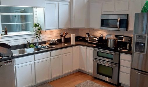Instead of replacing your cabinets, for thousands less you can have them painted any color to match your decor.